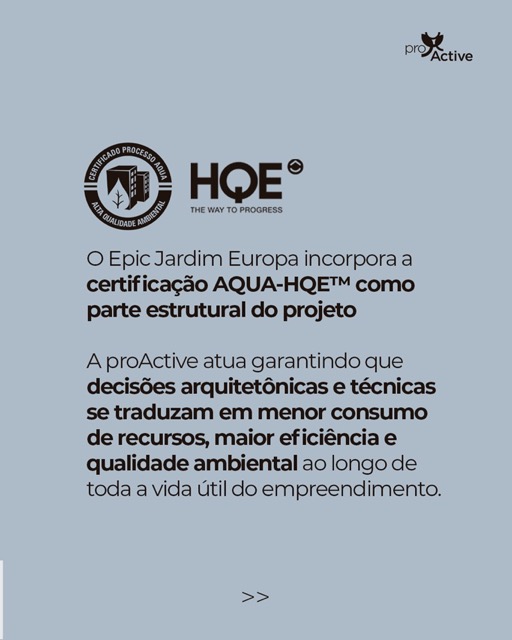 ProjetoCertificado #Cyrela #EpicJardimEuropa #AQUAHQE #SustentabilidadeAplicada #QualidadeAmbiental #proActive