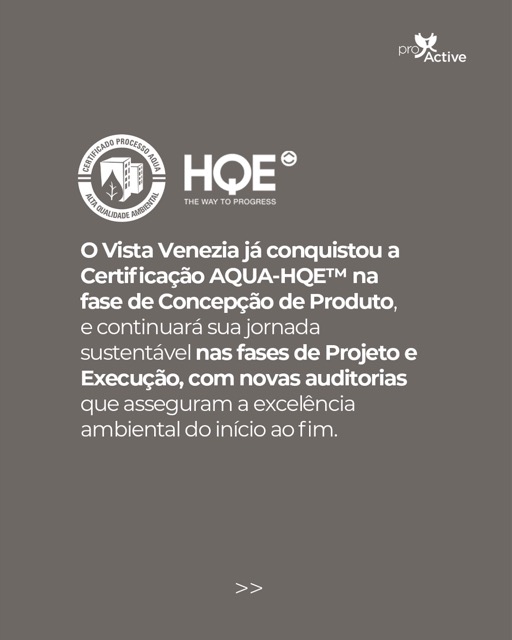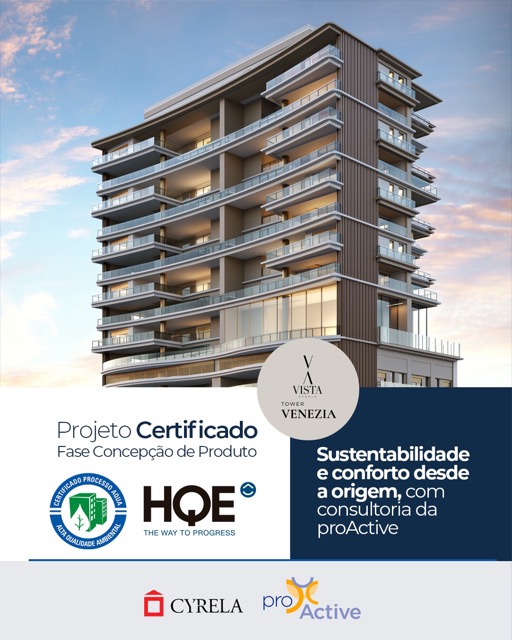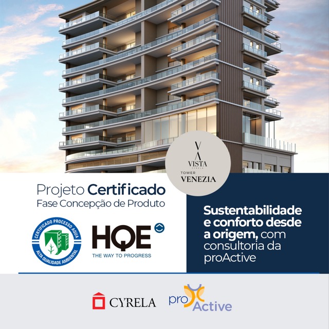 O Vista Venezia conquistou a Certificação AQUA-HQE™ na fase de Concepção de Produto, confirmando o compromisso da Cyrela com o desenvolvimento de empreendimentos que unem conforto, sofisticação e responsabilidade ambiental.